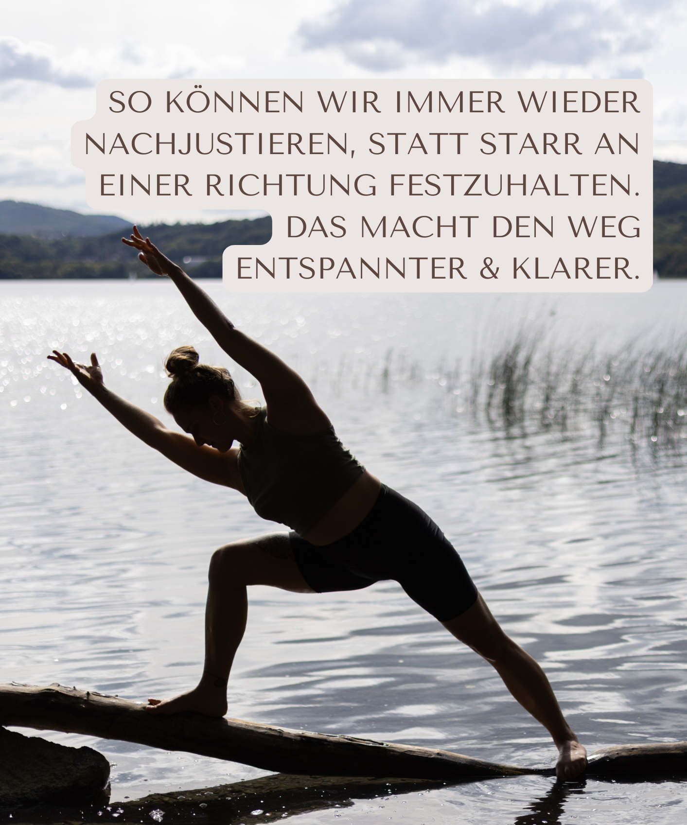 Und ich bin super froh durch die Auseinandersetzung mit meinem Körper, meiner Atmung, der Natur, Yoga und so vielen tollen Menschen, die mir in meinem Leben schon begegnet sind, lernen zu dürfen, dass Vertrauen besser ist. Dass mit dem „flow“ zu gehen und zu vertrauen, so viel schlauer ist, als krampfhaft irgendwo hinkommen zu wollen. Denn nicht alles kontrollieren zu müssen, sondern aus einer inneren Klarheit heraus zu steuern, macht das Leben so viel entspannter und weniger dramatisch. Das heißt nicht, dass wir das Lenkrad komplett aus der Hand schmeißen sollten sondern es lockerer zu umgreifen, um mit den Wellen gehen zu können.